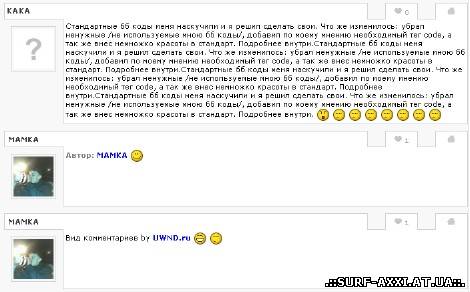 Вид комментариев не использующий картинки всё в CSS стиле, что улучшает скорость загрузки страницы. Прост в установки. 1. Заходим панель управления, комментарии, вид комментариев. Удаляем старый код и вставляем этот: